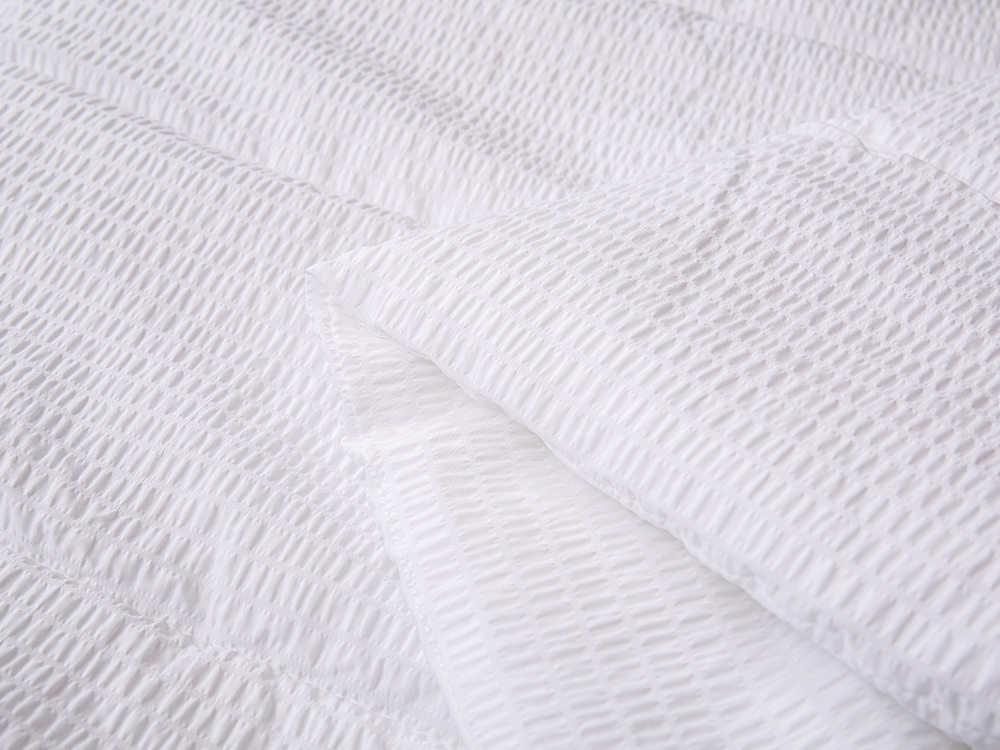 الجزء الأمامي والخلف من اللحاف بأكمله مصنوع من نسيج Seersucker عالي الجودة ، وهو أسلوب يعجبه العديد من العملاء. التأثير الكلي هو 3D. إنه أسلوب شائع جدًا في السوق هذا العام ويحظى بشعبية كبيرة بين الشباب.